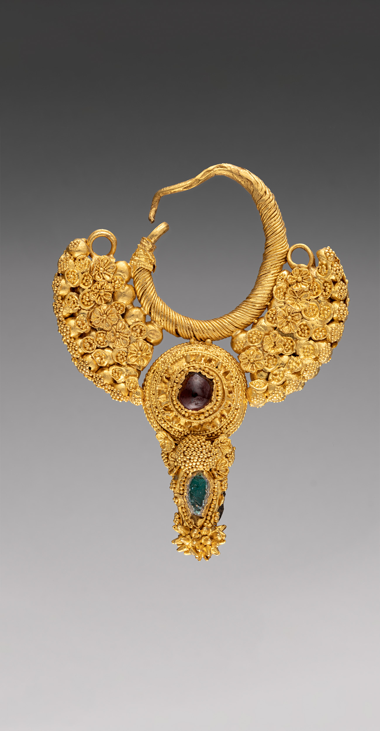 In pursuit of the exotic and beautiful, across the ancient world gold was combined with precious stones from far away – just like today. The language of wealth is timeless and international.