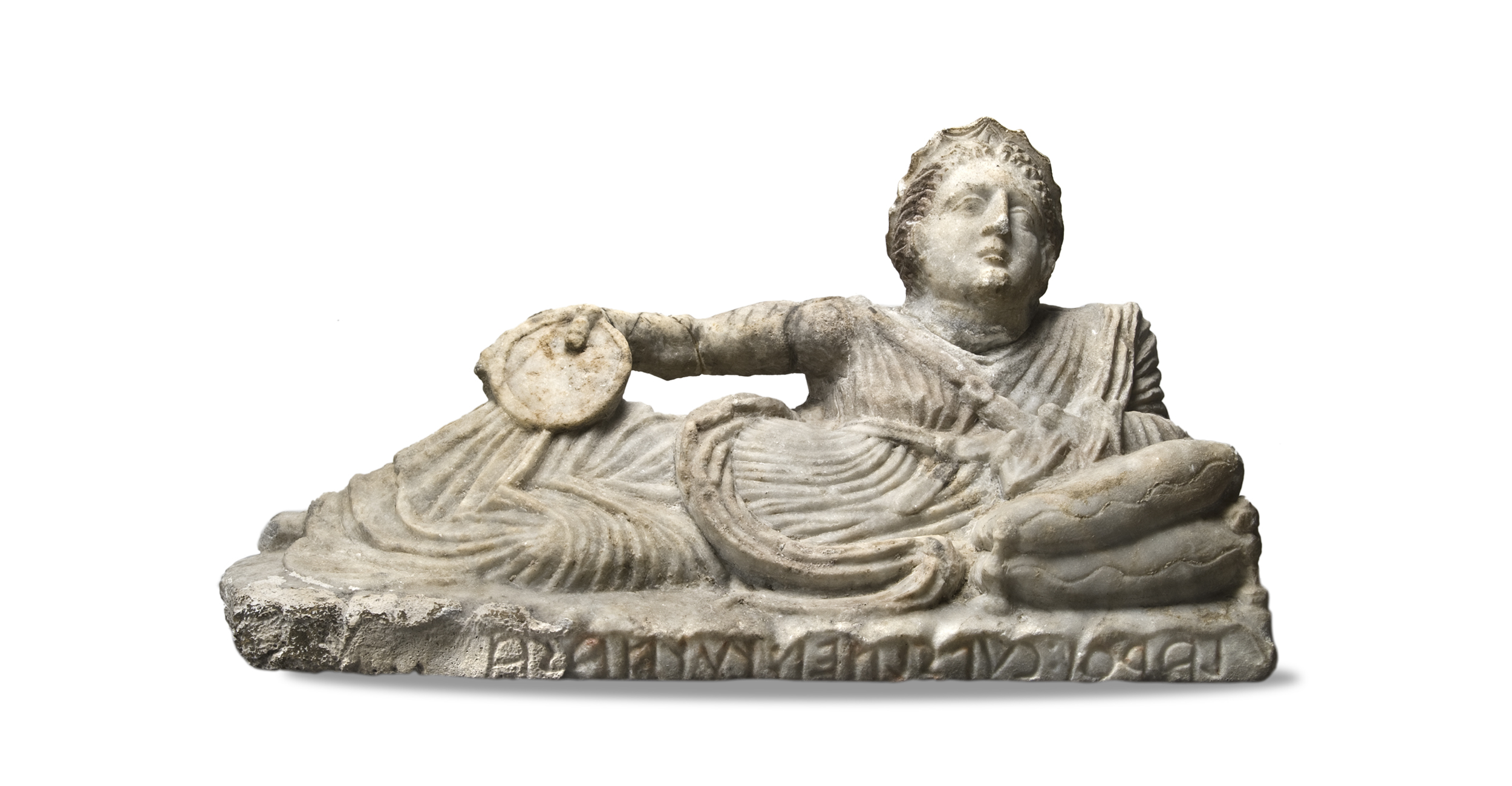 On the lids of Etruscan funerary urns, the deceased recline at an eternal banquet. Here, the relief recounts the death of Myrtilus, a divine hero — evidence of cultural as much as religious aspiration. Ash-chests like this were produced in large numbers and put in underground family tombs that mimicked the homes of the living.