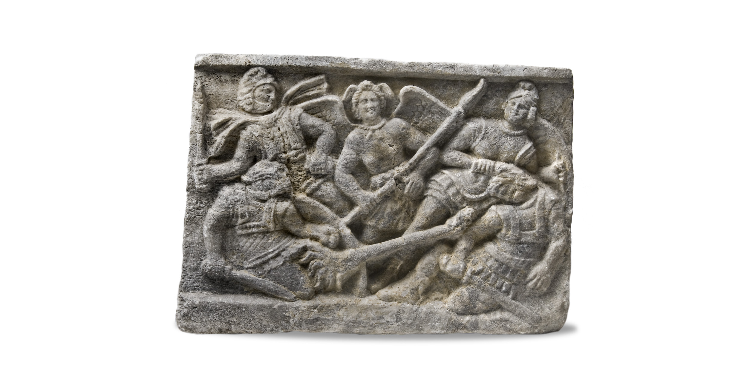 On the lids of Etruscan funerary urns, the deceased recline at an eternal banquet. Here, the relief recounts the death of Myrtilus, a divine hero — evidence of cultural as much as religious aspiration. Ash-chests like this were produced in large numbers and put in underground family tombs that mimicked the homes of the living.