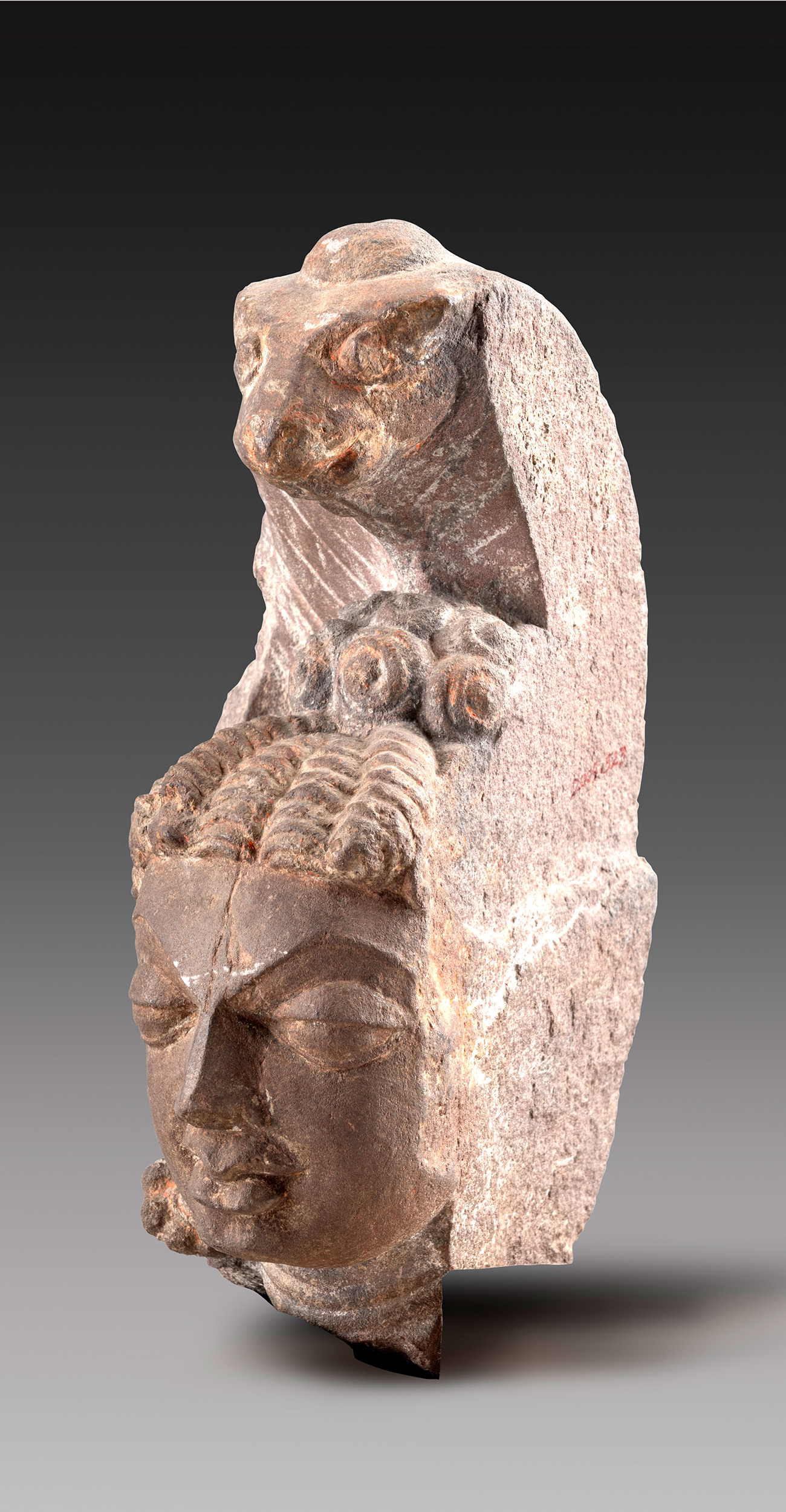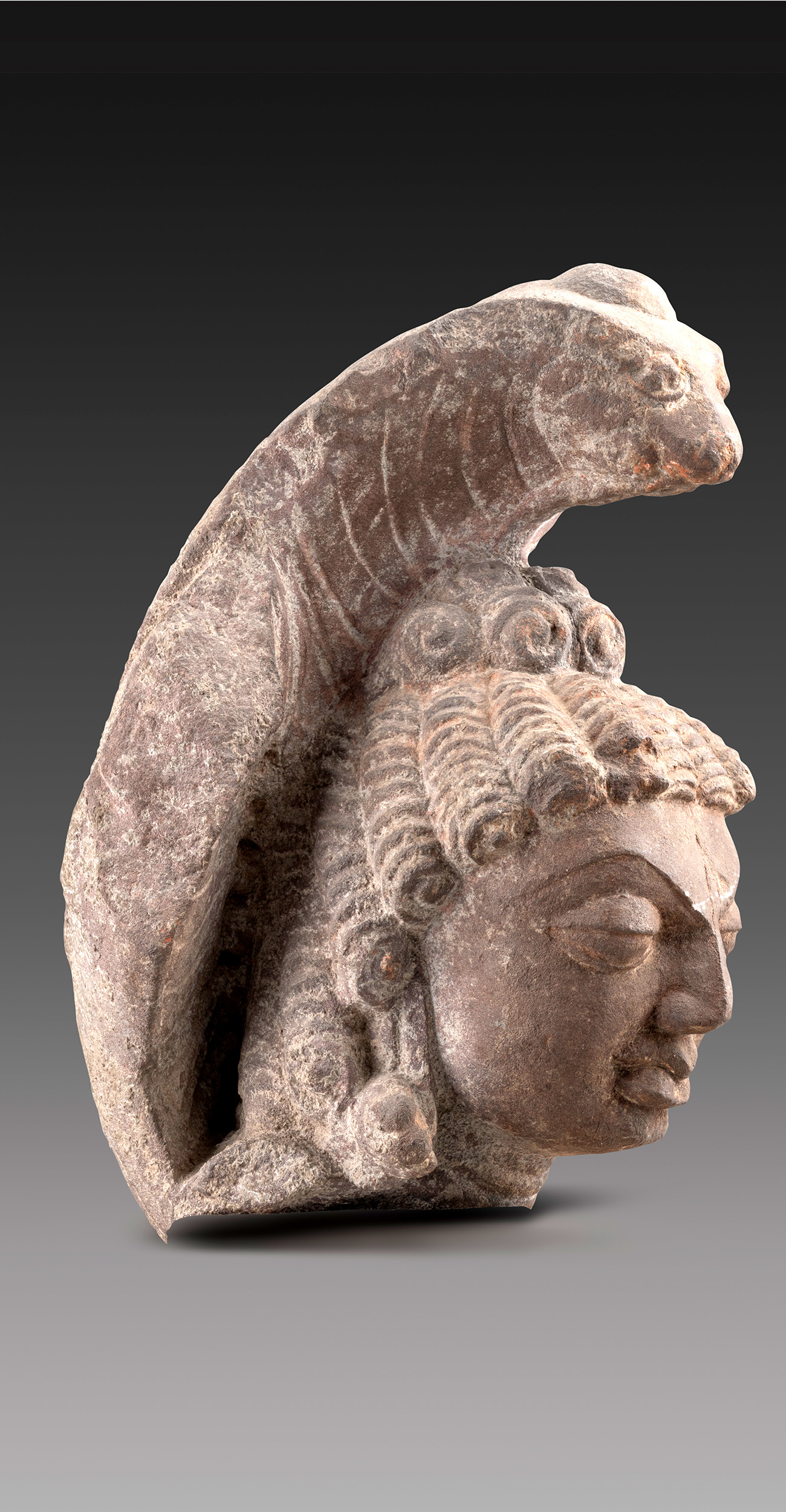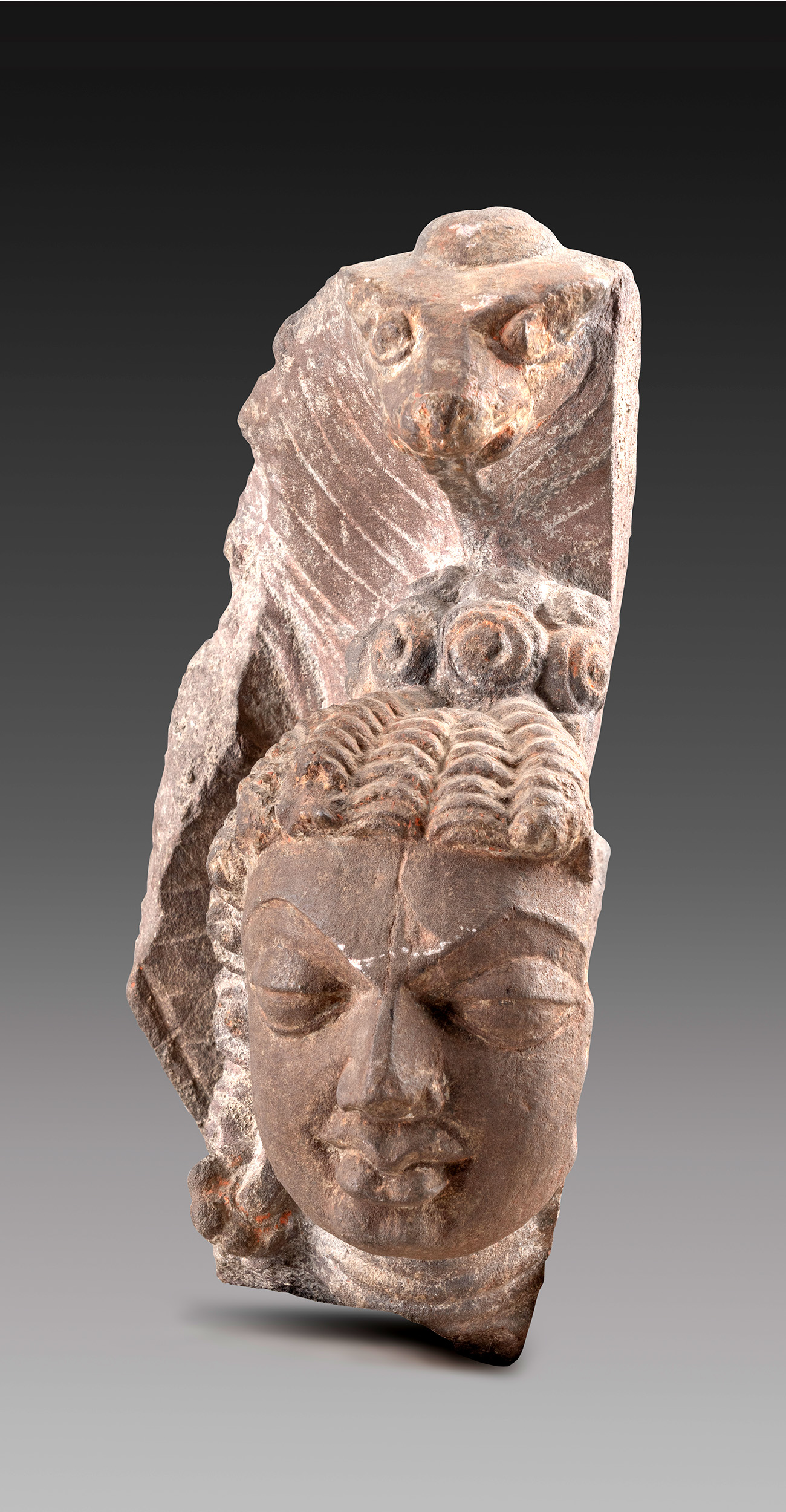 This head of serpent goddess reflects the aesthetic of the Gupta period — oval face, large eyes, noble nose, and expressive lips. Serpent worship, rooted in indigenous cults of nature worship, continues in parts of India, highlighting deep cultural and religious