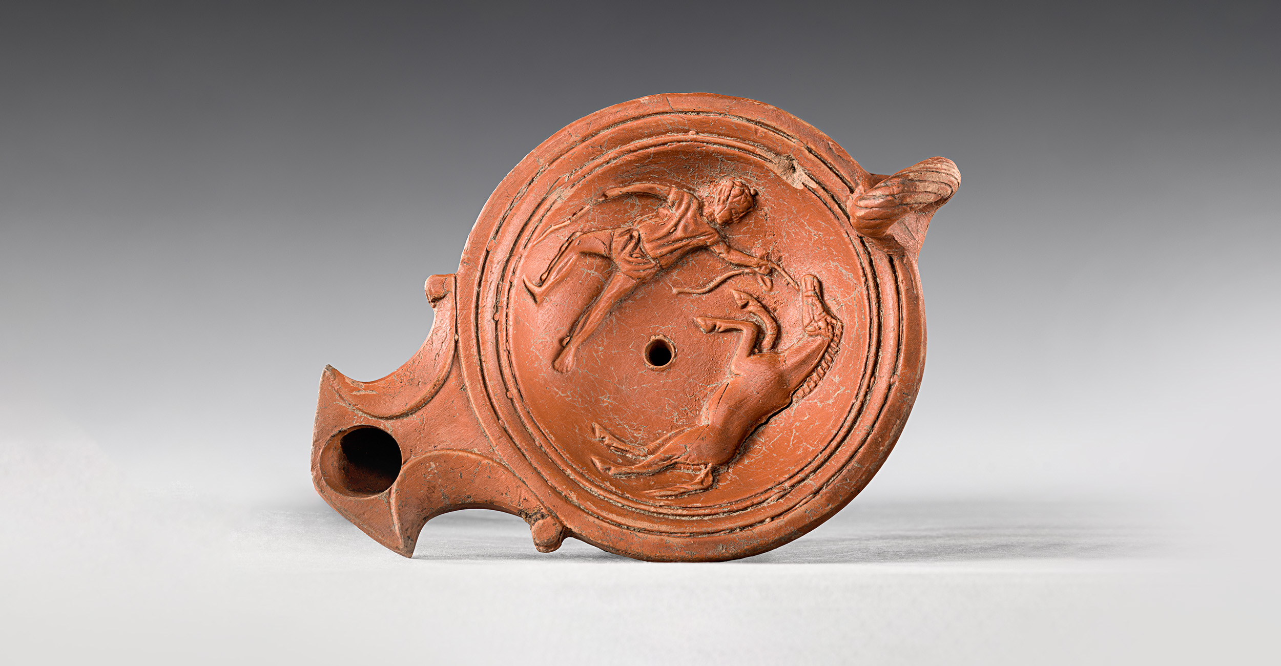 Circus games in Rome were like cricket in India. Every class – from the emperor to the poorest – came to these spectacles, in arenas like the Colosseum. Cheap mass-produced oil lamps take us into the homes of ordinary Romans. They show the popularity of gladiators and horse races. Fights between exotic wild animals brought from all over the known world proclaimed Rome’s enormous power. Emperors used ‘bread and circuses’ to keep the people content.