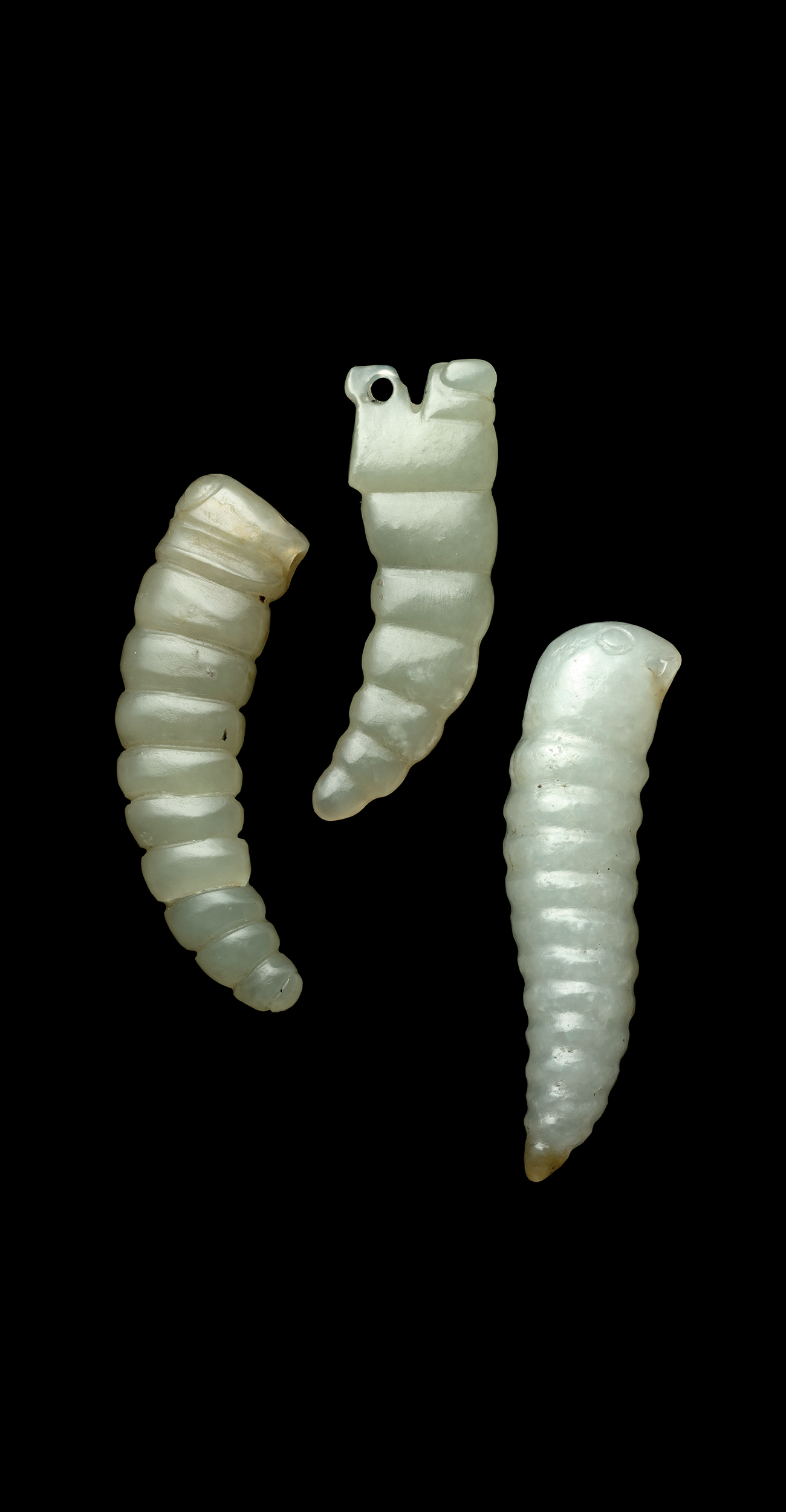 These pendants represent ancient China’s most precious materials and trade goods – silk and jade. Chinese silk carried by camel was exchanged for Central Asian horses and reached Iran, Arabia and the Roman Empire through many intermediaries.