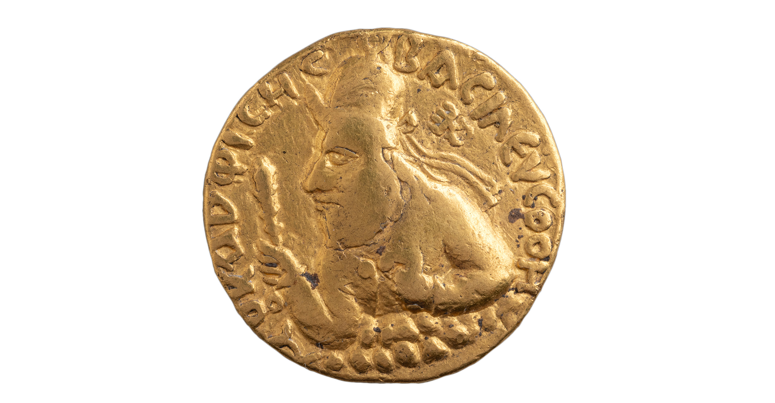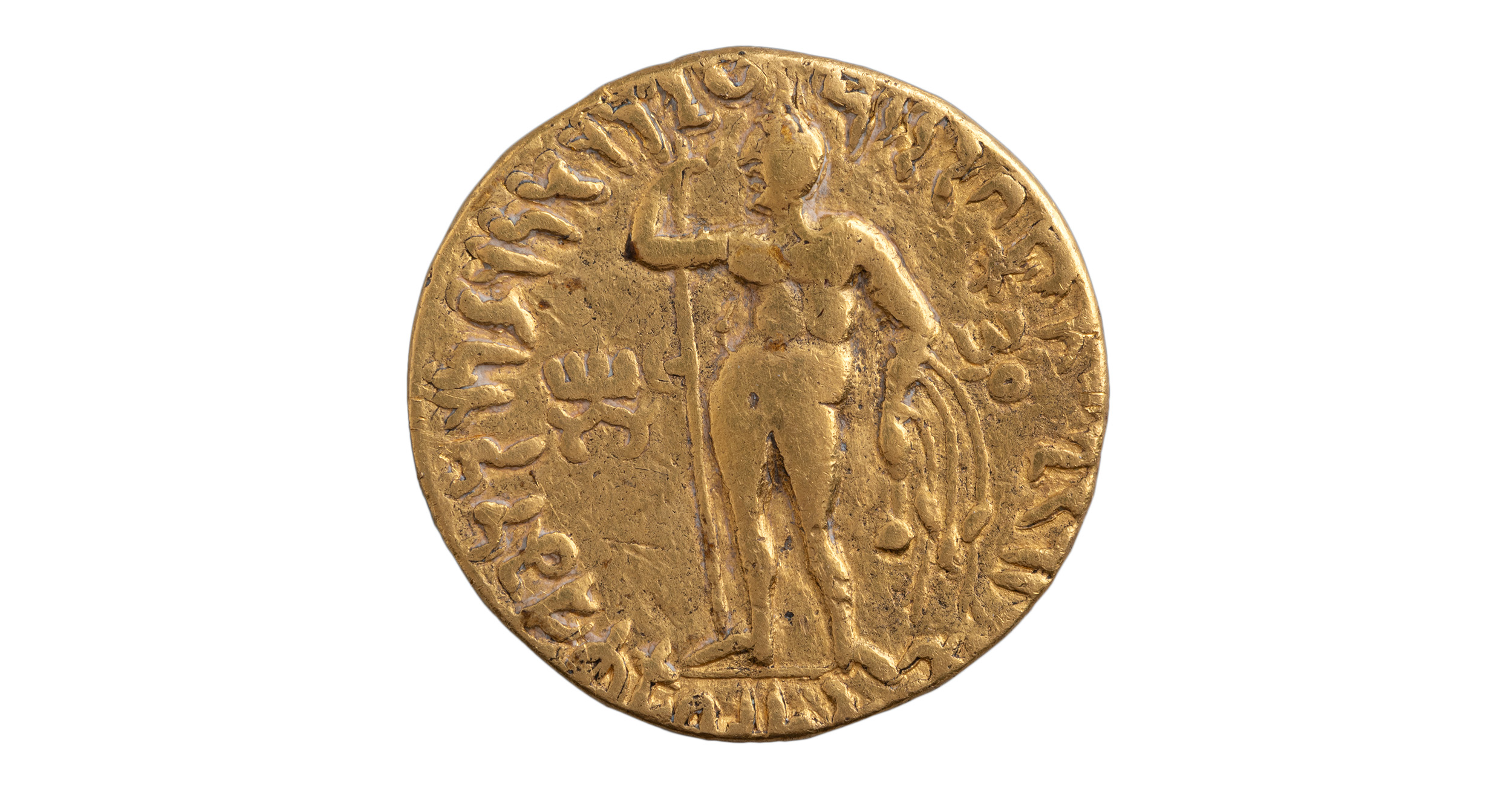The Kushanas controlled the northwest trade routes to Central Asia, and Vima Kadphises was the first to mint gold coins in India, due to the influx of Roman gold.